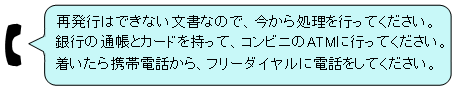 携帯電話からの指示を受け、ATMを操作させます。いつの間にか自分の口座から相手の口座へ振り込んでいます。