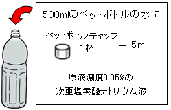 一般的な台所用漂白剤(原液濃度5%)を使い、消毒液を作ります。