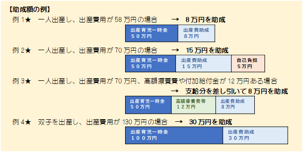 令和7年度より、子育て世帯の経済的負担を軽減し、子どもを産み育てやすい環境を整備することを目的として、出産費用の自己負担分の一部を町独自で助成します。無痛分娩を希望の方も対象となります。